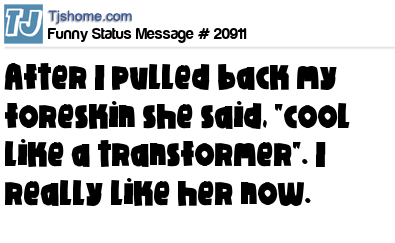 X is after I pulled back my foreskin she said, "cool like a transformer". I really like her now.