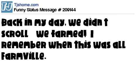 - # 209145 I’ve been on Facebook forever! I remember when we had to plow our fields in FarmVille by hand—virtually, of course!
