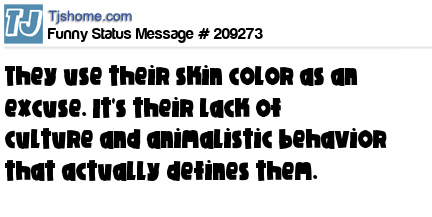 X says They use their skin color as an excuse. It's their lack of culture and animalistic behavior that actually defines them.
