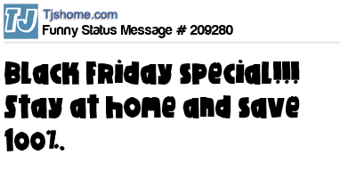 - # 117704 You want to save a shtiload of money next Black Friday??? Stay Home!!!