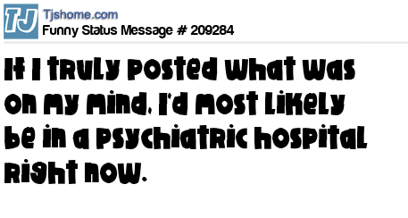 - # 47775 If I truly posted what was on my mind........I'd most likely be in a psychiatric hospital right now! Enough said
