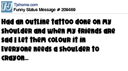 X says Had an outline tattoo done on my shoulder and when my friends are sad I let them colour it in Everyone needs a shoulder to crayon…