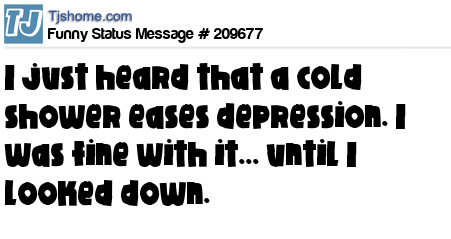 X says I just heard that a cold shower eases depression. I was fine with it... until I looked down.