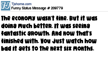 X is The economy wasn't fine. But it was doing much better. It was seeing fantastic growth. And now that's finished with. You just watch how bad it gets to the next six months.