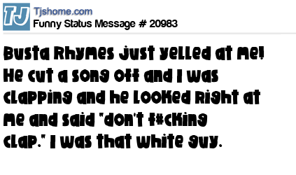 X is Busta Rhymes just yelled at me! He cut a song off and I was clapping and he looked right at me and said "don't f#cking clap." I was that white guy.