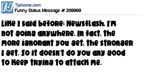 X is Like I said before: Newsflash, I'm not going anywhere. In fact, the more ignorant you get, the stronger I get. So it doesn't do you any good to keep trying to attack me.