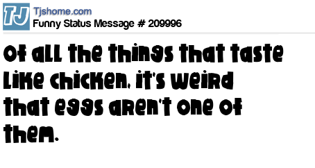 - # 202195 Of all the things that taste like chicken, it's weird that eggs are not one of them.