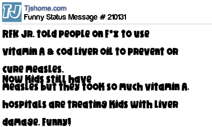 Now kids still have measles but they took so much vitamin A, hospitals are treating kids with liver damage. Funny! π