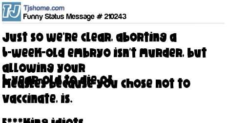 X is Just so we're clear, aborting a 6-week-old embryo isn't murder, but allowing your