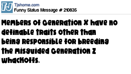 X says Members of Generation X have no definable traits other than being responsible for breeding the misguided Generation Z whackoffs.