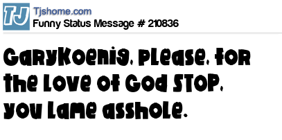 - # 210788 GaryKoenig, please stop with horrible jokes. You're the lamest asshole on social media.