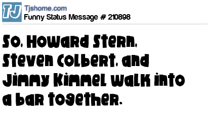 X So, Howard Stern, Steven Colbert, and Jimmy Kimmel walk into a bar together.