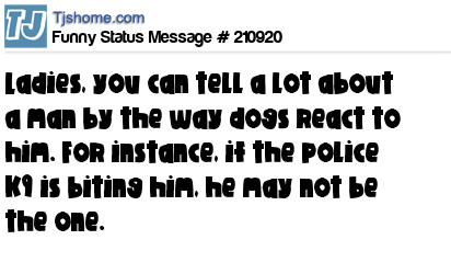 X is Ladies, you can tell a lot about a man by the way dogs react to him. For instance, if the police K9 is biting him, he may not be the one.