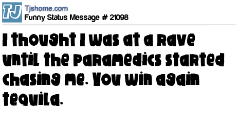 - # 25199 I thought I was at a rave until the paramedics started chasing me. You win again tequila.