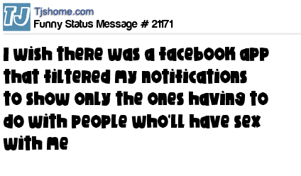 X is I wish there was a facebook app that filtered my notifications to show only the ones having to do with people who'll have sex with me