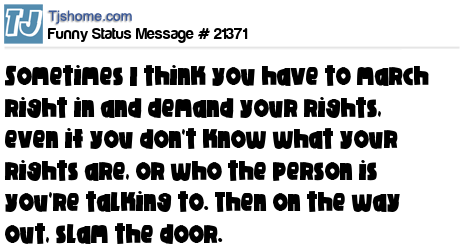 X Sometimes I think you have to march right in and demand your rights, even if you don't know what your rights are, or who the person is you're talking to. Then on the way out, slam the door.