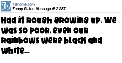 X had it rough growing up. We was so poor, even our rainbows were black and white...