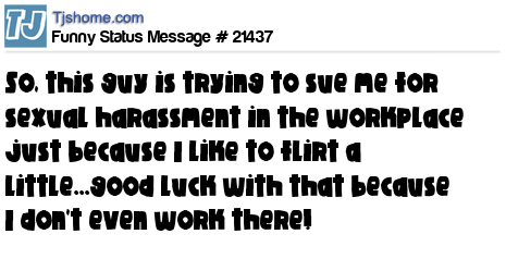 X so, this guy is trying to sue me for sexual harassment in the workplace just because I like to flirt a little...good luck with that because I don't even work there!