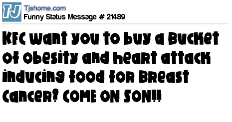X is KFC want you to buy a Bucket of obesity and heart attack inducing food for Breast Cancer? COME ON SON!!