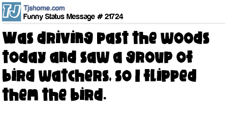 X says was driving past the woods today and saw a group of bird watchers, so I flipped them the bird.