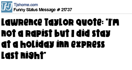 X is Lawrence Taylor quote: "I'm not a rapist but I did stay at a holiday inn express last night"