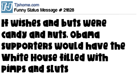 X If wishes and buts were candy and nuts, Obama supporters would have the White House filled with pimps and sluts