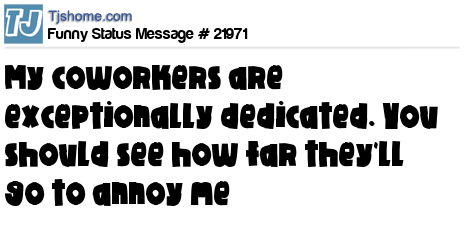 X My coworkers are exceptionally dedicated. You should see how far they'll go to annoy me