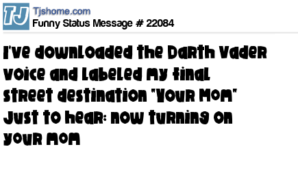 X I've downloaded the Darth Vader voice and labeled my final street destination "Your M0m" Just to hear: now turning on y0ur m0m