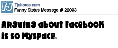 - # 96635 Facebook is slowly evolving into Myspace. Remember how you could post pictures and signs on Myspace well that's pretty much all that I see anymore. We all know what happened to Myspace. That's right no one uses it anymore. Just sayin