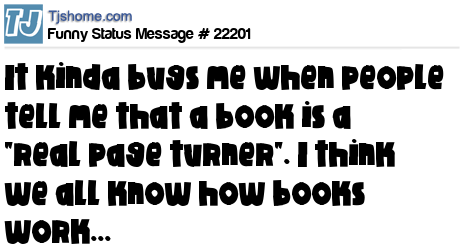 X says It kinda bugs me when people tell me that a book is a "real page turner". I think we all know how books work...