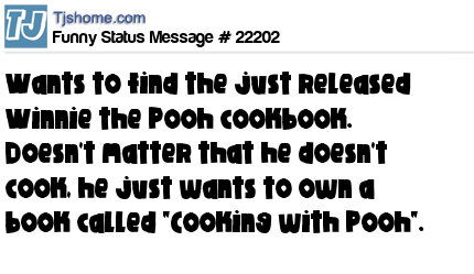X wants to find the just released Winnie the Pooh cookbook. Doesn't matter that he doesn't cook, he just wants to own a book called "Cooking with Pooh".