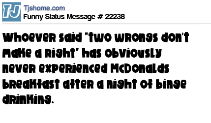X Whoever said "two wrongs don't make a right" has obviously never experienced McDonalds breakfast after a night of binge drinking.