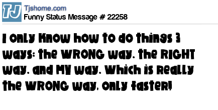 X is I only know how to do things 3 ways: the WRONG way. the RIGHT way. and MY way. Which is really the WRONG way, only faster!