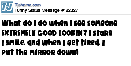 X What do I do when I see someone EXTREMELY GOOD LOOKIN'? I stare, I smile, and when I get tired, I put the mirror down!