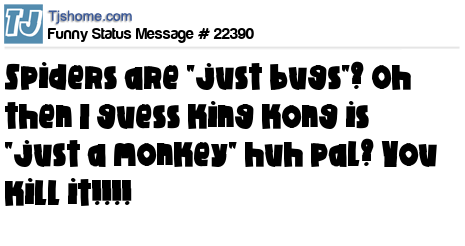 X is Spiders are "just bugs"? Oh then I guess king kong is "just a monkey" huh pal? You kill it!!!!