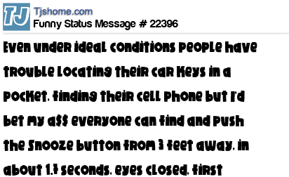- # 60586 People have trouble locating their car keys in a pocket, hitting the G-spot, and pinning the tail on the donkey – but I bet everyone can find and push the Snooze button from 3 feet away, in about 1.7 seconds, eyes closed, every time.