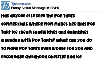 X Has anyone else seen the Pop Tarts commercials where mom makes her kids Pop Tart ice cream sandwiches and garnishes a sundae with Pop Tarts? What can you do to make Pop Tarts even worse for you AND encourage childhood obesity? Add ice cream of course!