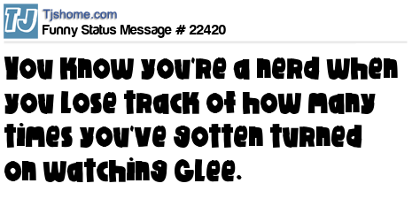 X is You know you're a nerd when you lose track of how many times you've gotten turned on watching Glee.