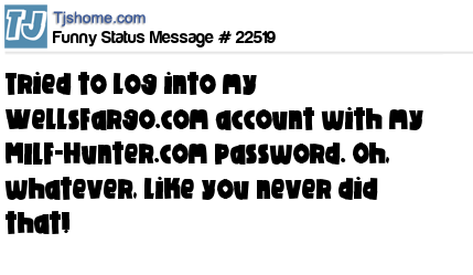X Tried to log into my WellsFargo.com account with my MILF-Hunter.com password. Oh, whatever, like you never did that!