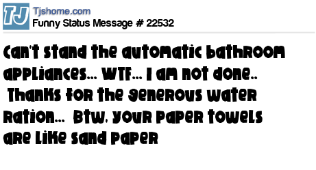 X Can't stand the automatic bathroom appliances... WTF... I am not done.. Thanks for the generous water ration... Btw, your paper towels are like sand paper