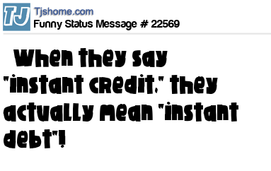 - # 92199 I'm thinking when they say,, "Instant Credit",, I think they really mean,, "Instant Debt".
