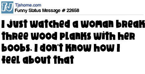 X is I just watched a woman break three wood planks with her boobs. I don't know how I feel about that