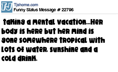 - # 18116 taking a mental vacation...my body is here but my mind is gone somewhere tropical with lots of water sunshine and a cold drink