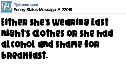 X Either she's wearing last night's clothes or she had alcohol and shame for breakfast.