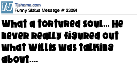 X What a tortured soul... He never really figured out what Willis was talking about....
