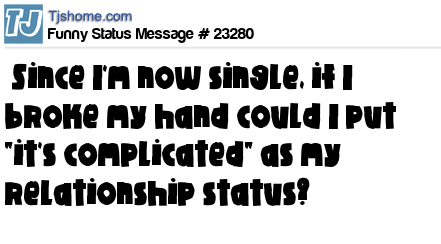 - # 15982 Since I'm now single, if I broke my hand could I put "it's complicated" as my relationship status?