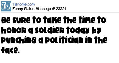 X Be sure to take the time to honor a soldier today by punching a politician in the face.