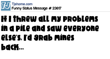 - # 23593 If we all threw our problems in a pile and saw everyone else's, we'd grab ours back.