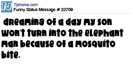 X is dreaming of a day my son won't turn into the elephant man because of a mosquito bite.