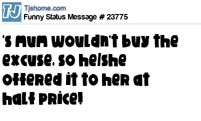 X 's mum wouldn't buy the excuse, so he/she offered it to her at half price!